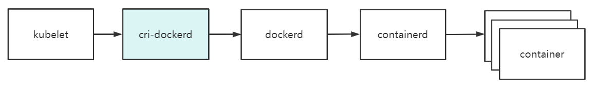 后来,在 Kubernetes 1.20 版本发布时宣布:为了优化核心代码,减少维护负担,将在 1.24 版本中正式移除 “Dockershim”,而当时 Docker 又不支持 CRI,这就意味着 Kubernetes 无法再 Docker 作为容器运行时。Docker 官方为了解决这个问题,与 Mirantis 公司合作,开发了一个名为 “cri-dockerd” 的代理程序,负责 Kubelet 与 Docker 通信,如图下图所示。