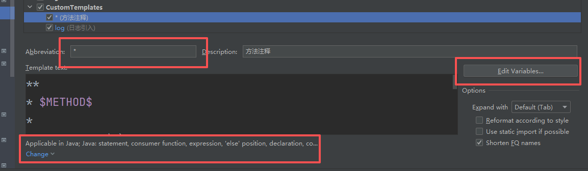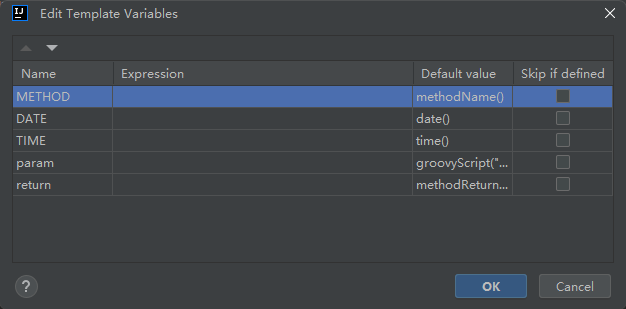 $param$ --> groovyScript("if(\"${_1}\".length() == 2) {return '';} else {def result=''; def params=\"${_1}\".replaceAll('[\\\\[|\\\\]|\\\\s]', '').split(',').toList();for(i = 0; i < params.size(); i++) {if(i==0){result+=' * @param ' + params[i] + ' ' + params[i]}else{result+='\\n' + ' * @param ' + params[i] + ' ' + params[i] }}; return result;}", methodParameters())