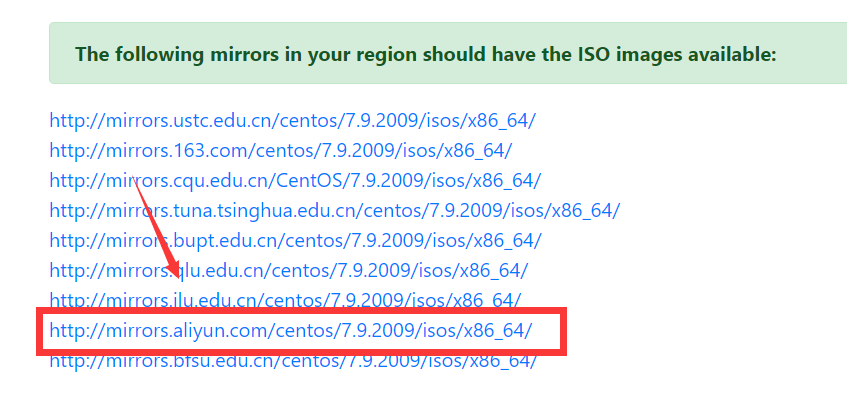 阿里镜像直达地址: https://mirrors.aliyun.com/centos/7.9.2009/isos/x86_64/