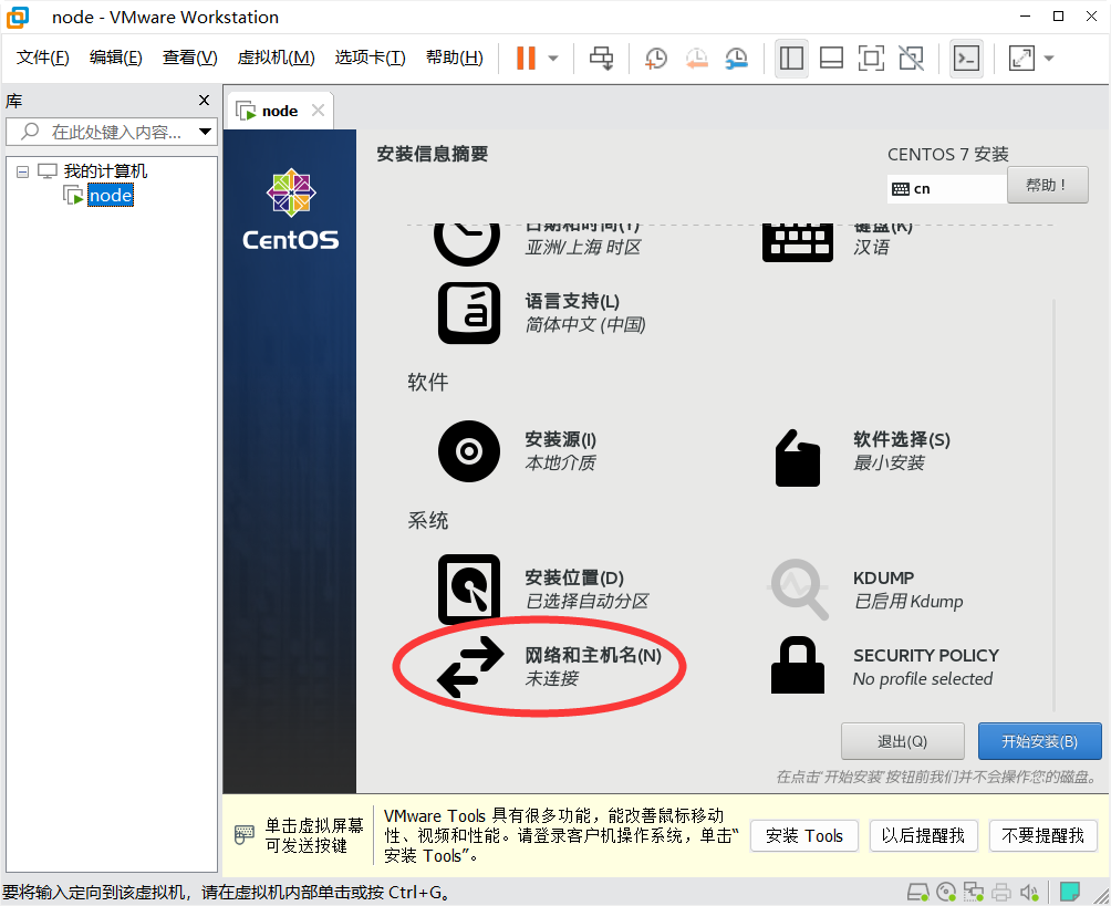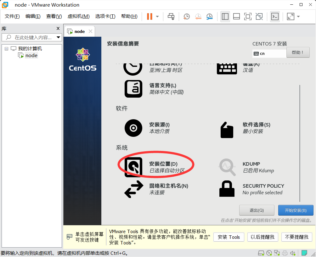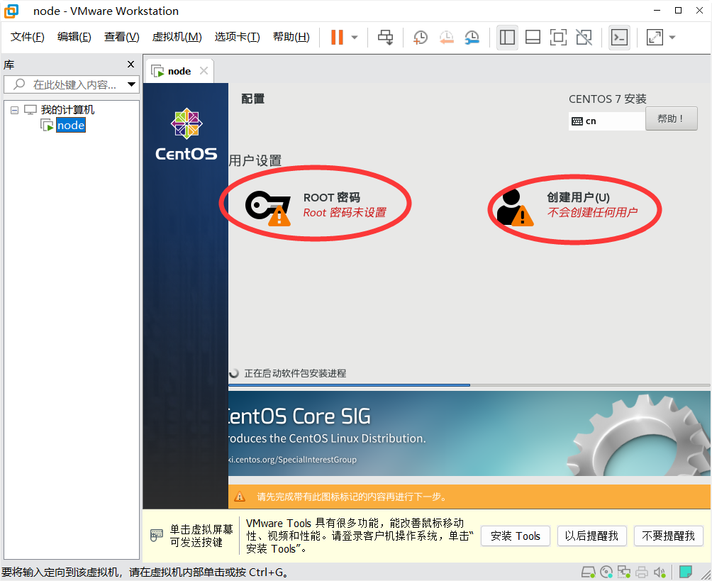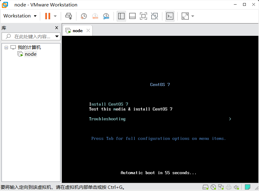 在虚拟机中的操作,鼠标必须要移入到虚拟机中,否则虚拟机感应不到,无法对其进行操作。