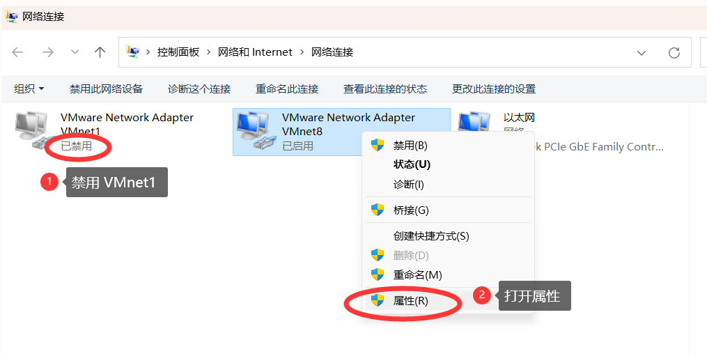控制面板 ---> ⽹络和Internet设置 ---> 网络和共享中心 --> 更改适配器设置