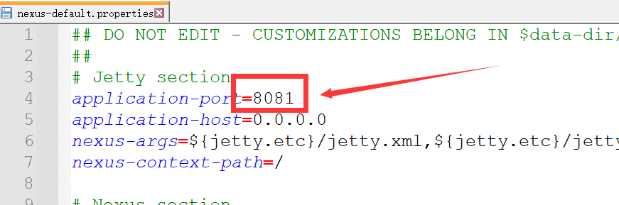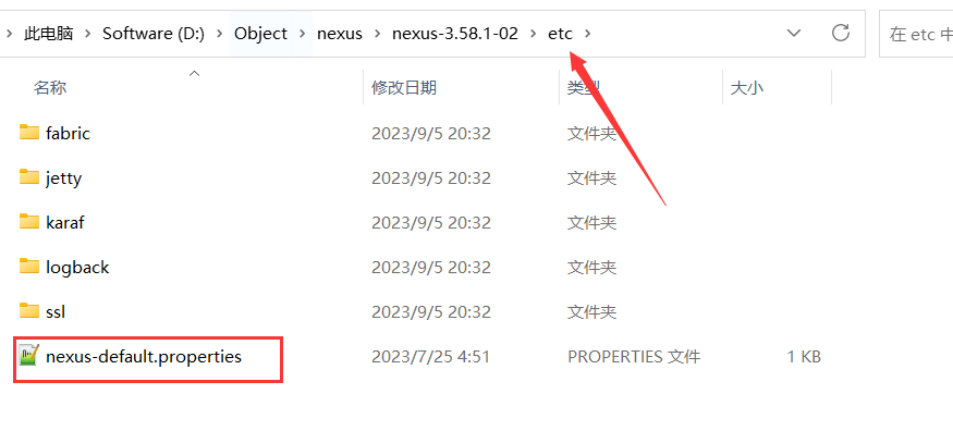 进入到 etc 目录, 找到 nexus-default.properties 文件