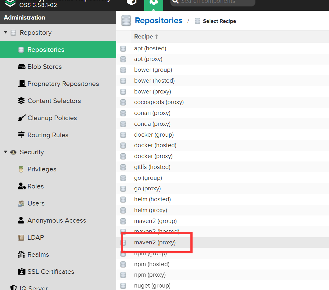 点击 Create repositories ,选择 maven2(proxy) 仓库: