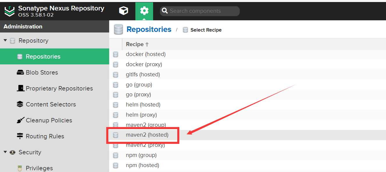 点击 Create repositories ,选择 maven2(hosted) 仓库: