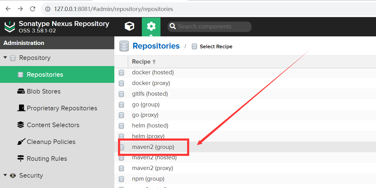 点击 Create repositories ,选择 maven2(group) 仓库: