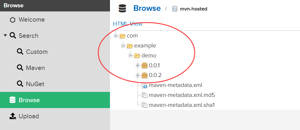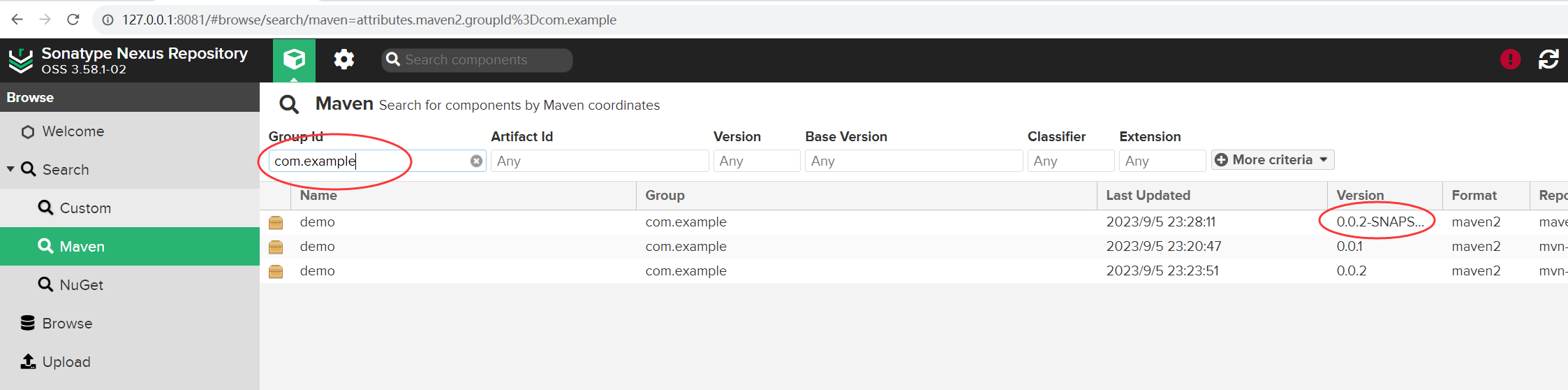</build>其中 release 发布到上面我们自己创建的 mvn-hosted 中,snapshot 版本就发布到原来 Nexus3 帮我们默认创建好的 maven-snapshots 中。