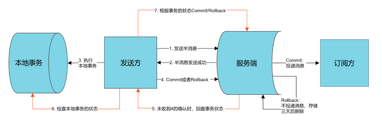 - 发送方收到消息回查后,需要检查对应消息的本地事务执行的最终结果