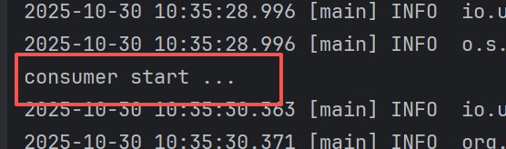 启动项目时, 控制台打印 consumer start ... 启动成功