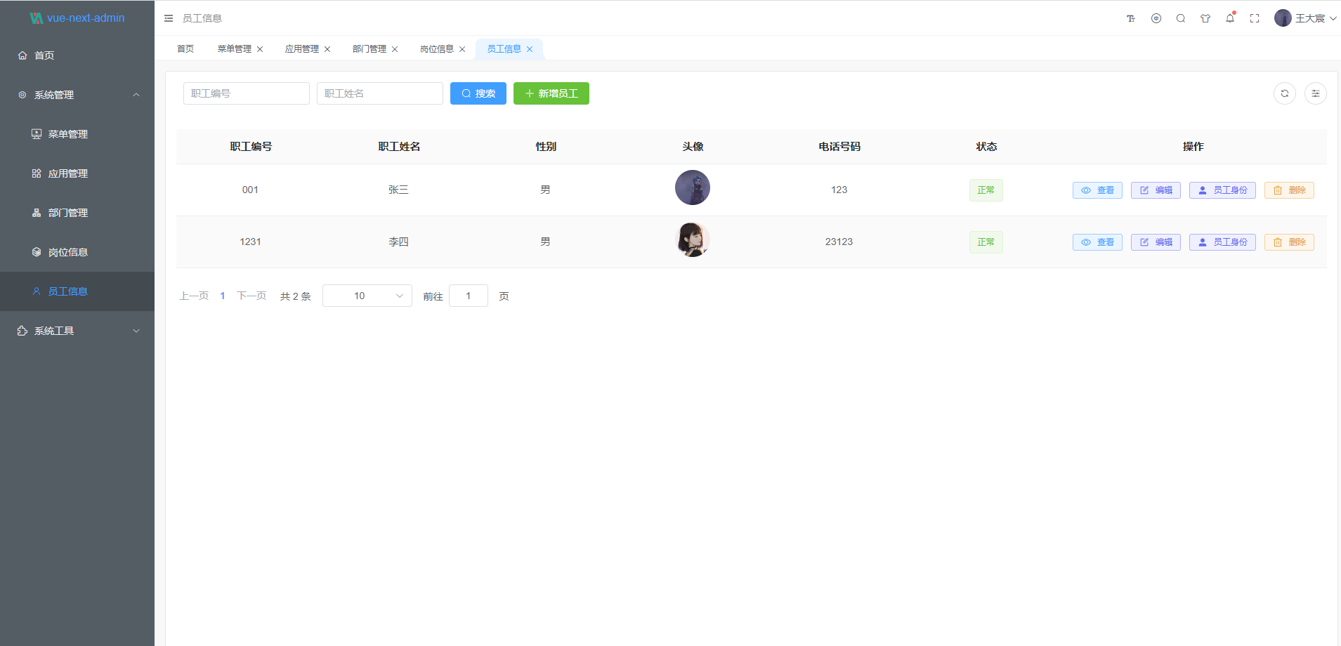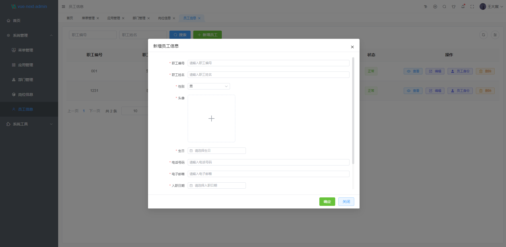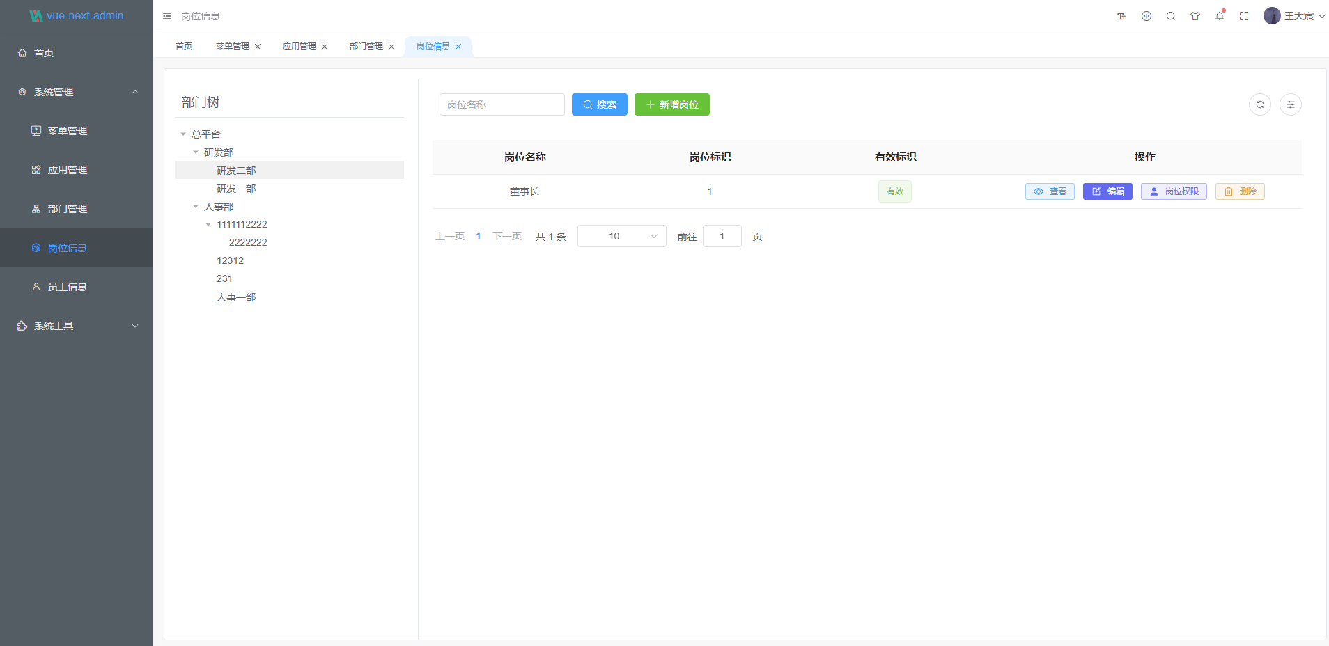 - 部门管理: 配置系统组织机构(公司、部门、小组)。