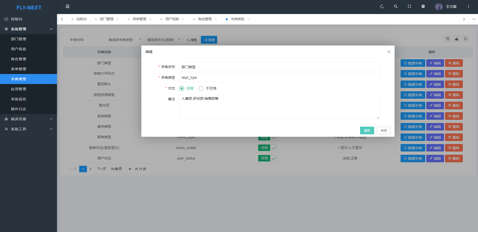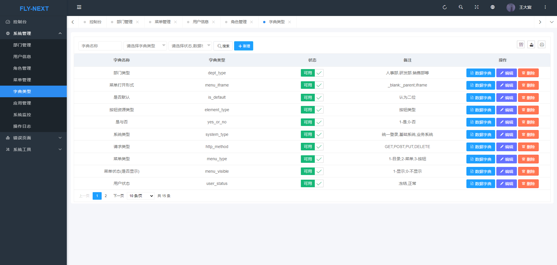 - 字典管理:对系统中经常使用的一些较为固定的数据进行维护。