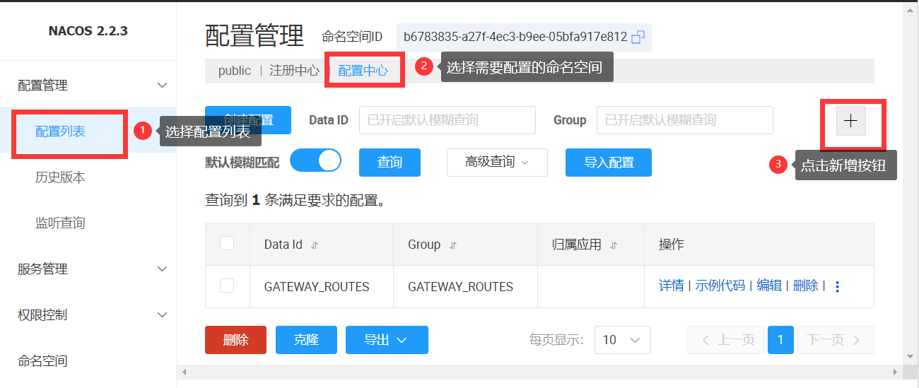 nacos 创建命名空间, 命名空间ID为: 07656b3c-bb69-470a-a942-6ae27b5287cb